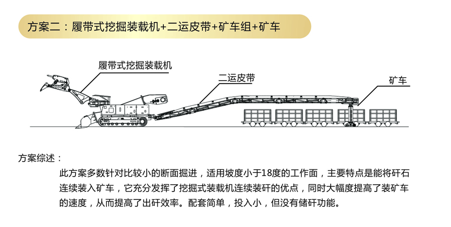 方案二:履帶式挖掘裝載機+二運皮帶+礦車組